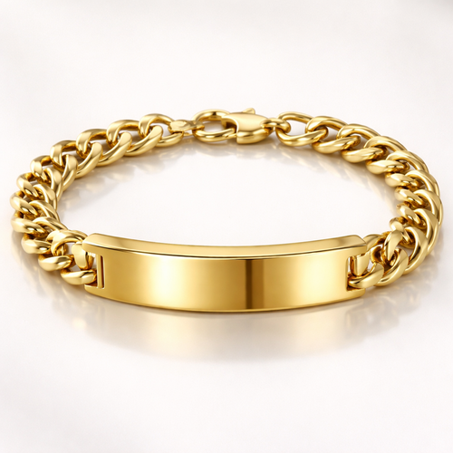 pulsera de oro amarillo con placa gruesa
