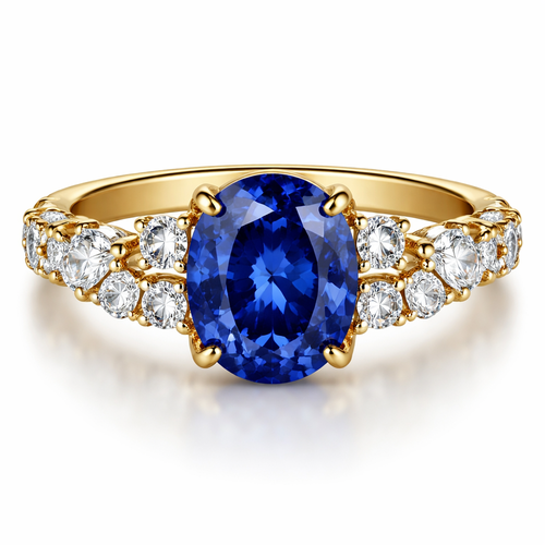 3 1/2 carat sapphire gemstone oval with smaller different size marquette and princess cut diamonds on both sides of the ...