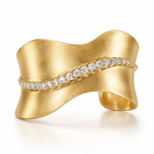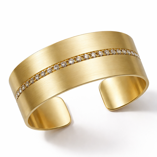 I want a cuff made of brushed gold with a line of champagne diamonds across the center