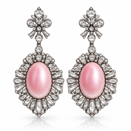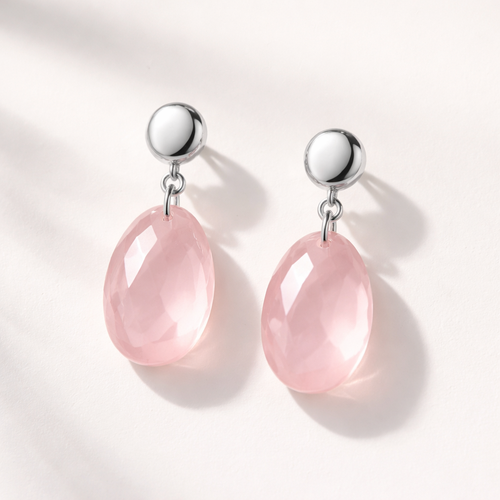 silver stud connected to a pink stone underneath