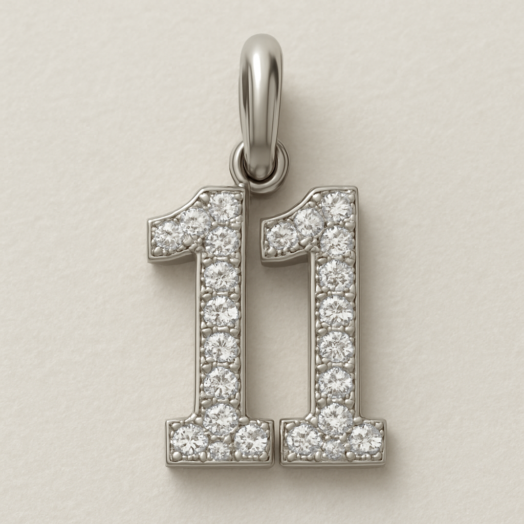“11 ” diamond pave charm no coin just letters