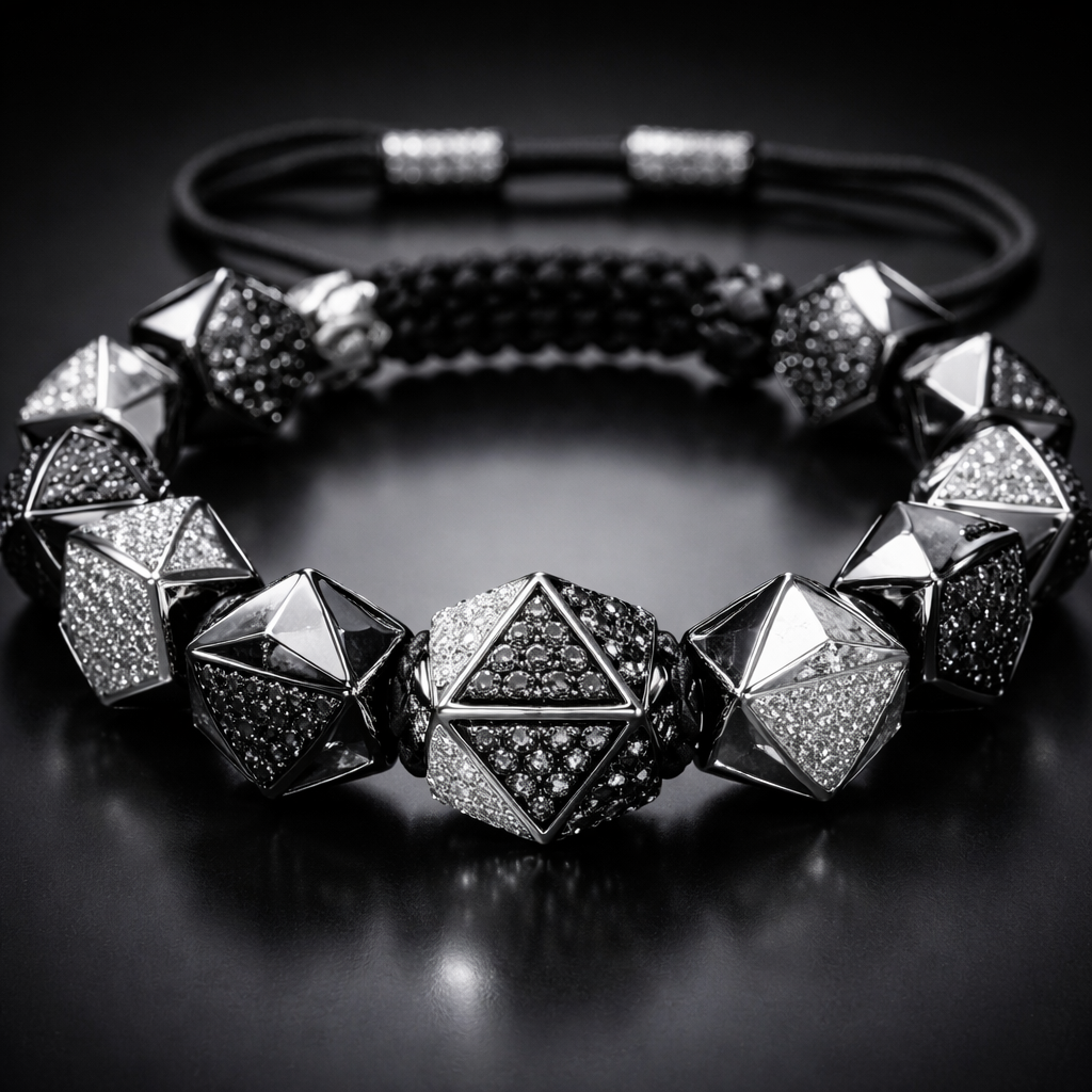 Chambala Geomatricw sharp edges of architectural shapes and design of bracelet beads for men of white and ablack diamonds