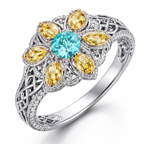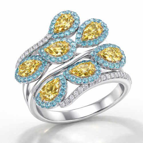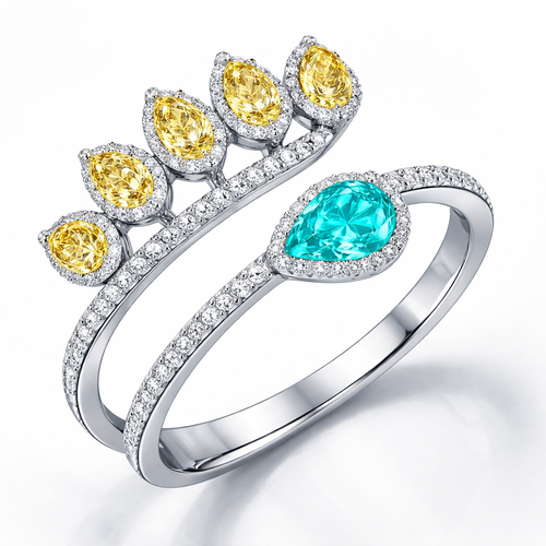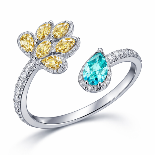 A women's ring. 7粒水滴小黃鑽石和40份帕拉伊巴