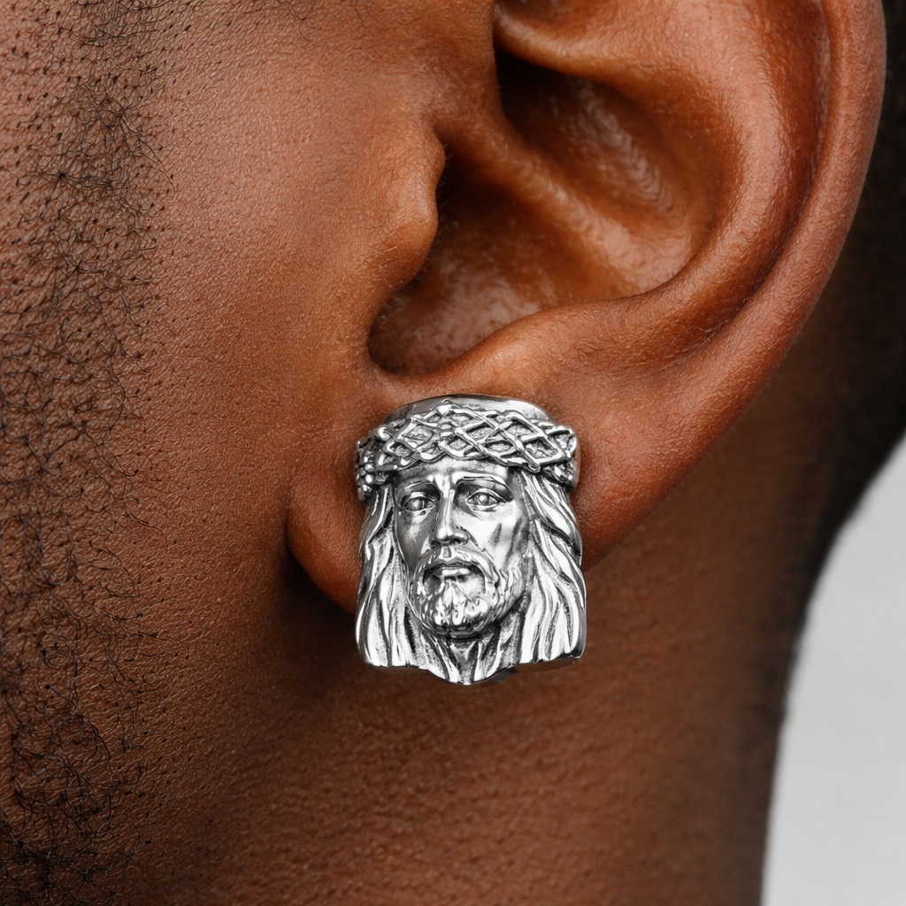 Silver Jesus piece earrings for men no diamonds at all and don’t want them hanging