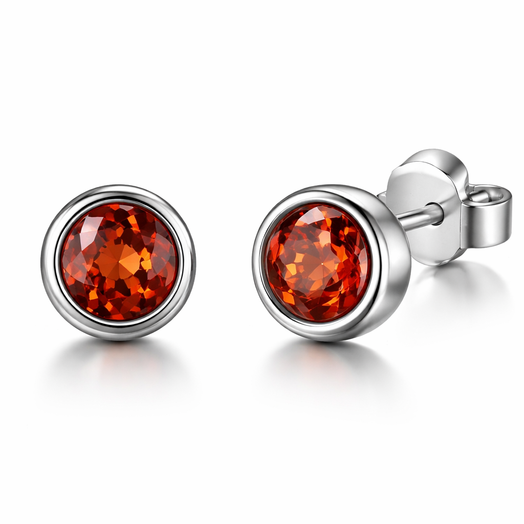 A modern women's ring made of silver with garnet stones suitable for daily wear. 設計一款簡單耳環用以上橙色的石榴原石. 包銀耳環款式是釘子式