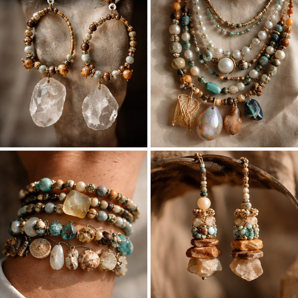 nowadays people wear earings and jewelleries made of rawmaterials and aesthetic , beaded style
