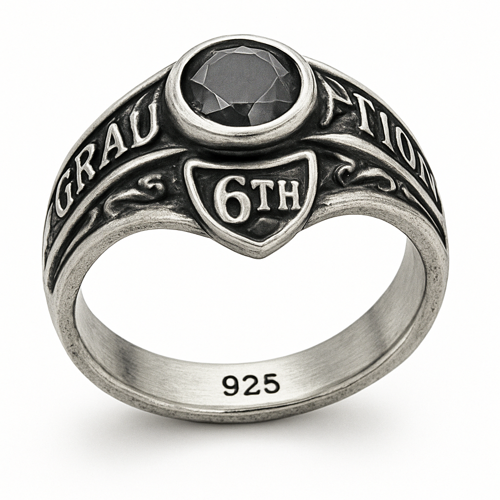 Anillo 925 , para mujeres de Graduación con piedra redonda 6 grado con oxidación , classic style