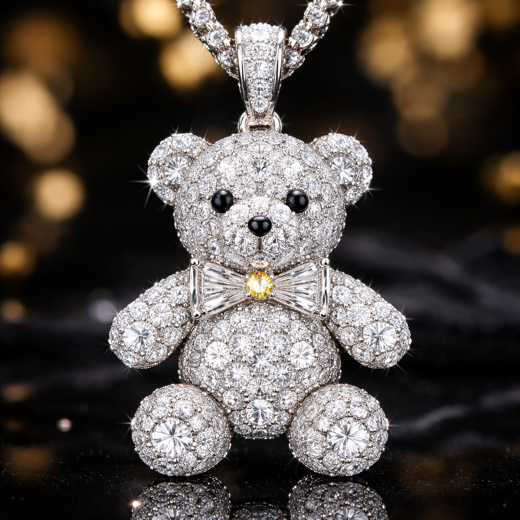 Make a pendent using teddy bear shape diamond , luxury style