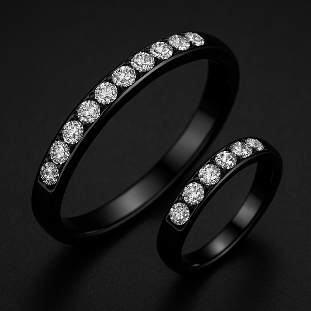 Schwarzes Armband mit feinen weißen Diamanten ca 0,5cm dich mit passendem Ring