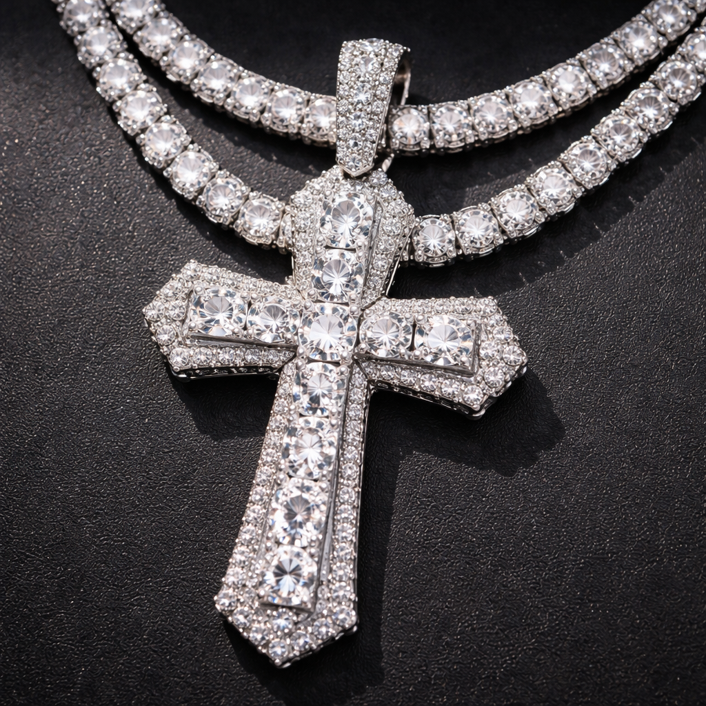 Big diamond cross and tennis chain
