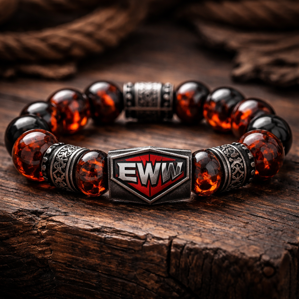 Only Ambers stone bright red black colour man’s bracelet EVW sports logo arm