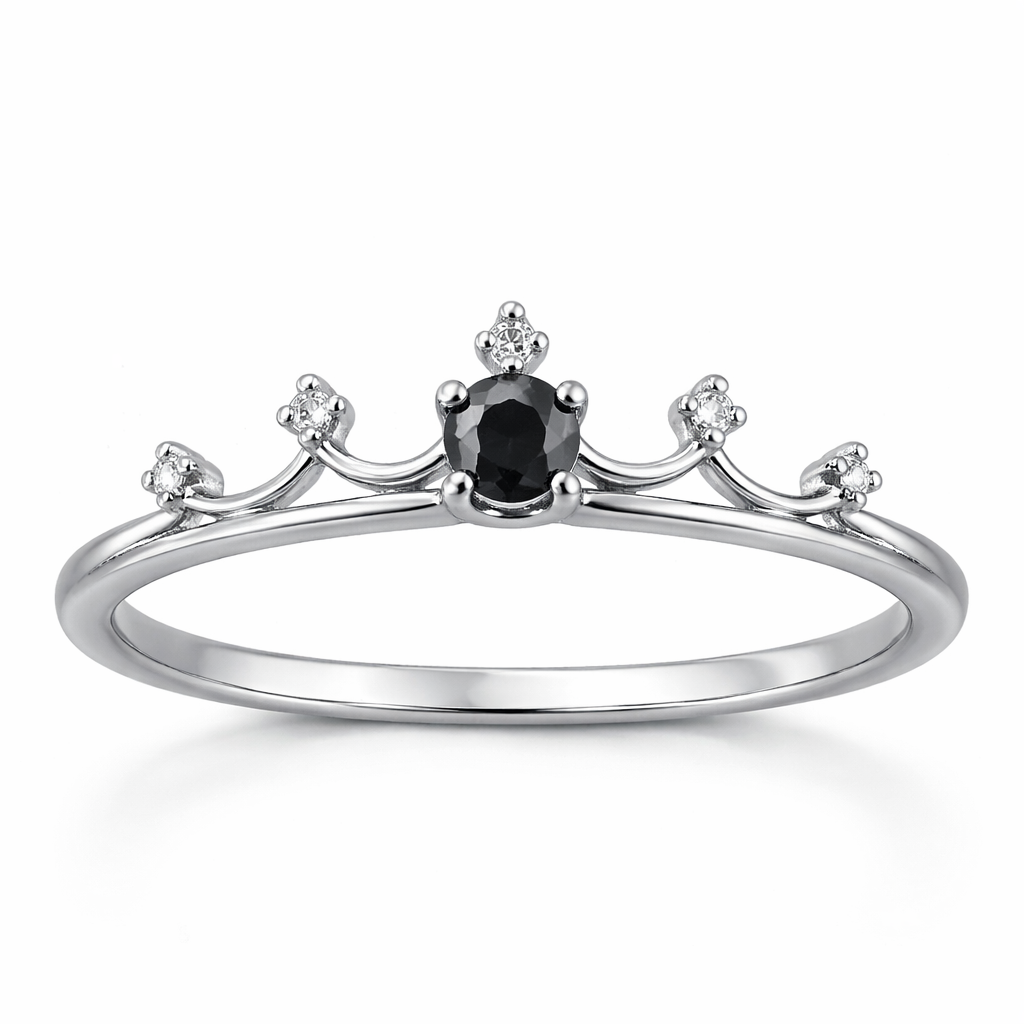 A classic women's ring made of silver with diamond stones suitable for daily wear. estilo coroa com pedra central preta