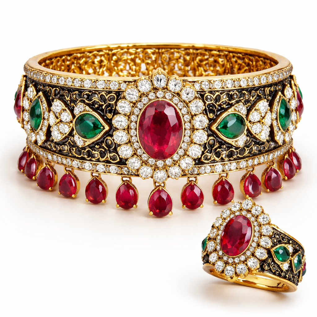 Design Ruby / zircon / Emerald / black meena kada and ring