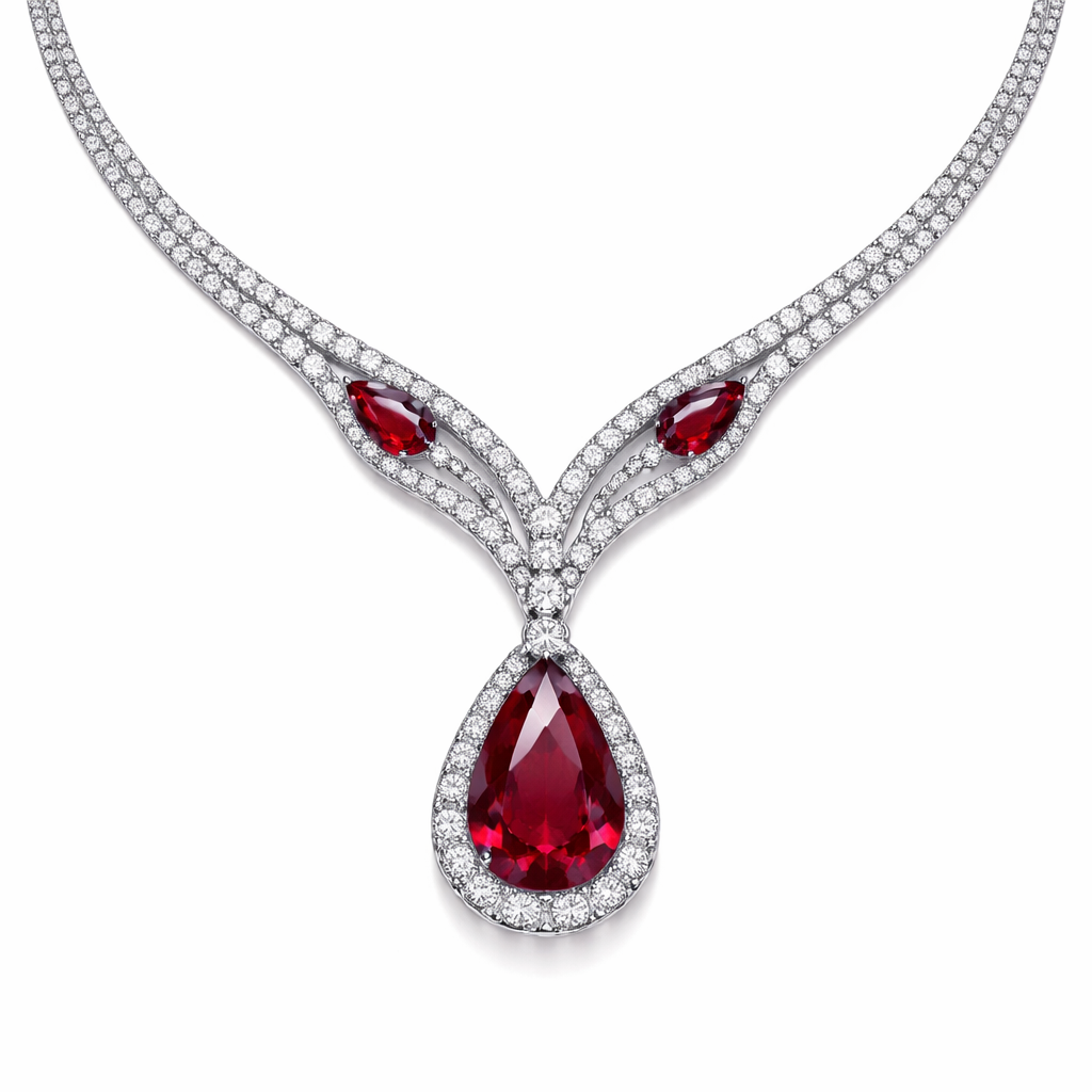 A women's necklace. maintain the design of the picture. use ruby instead of emarald. don't change anything else.