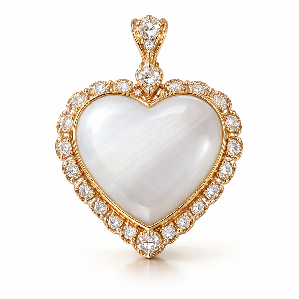 White agate stone with heart bezel