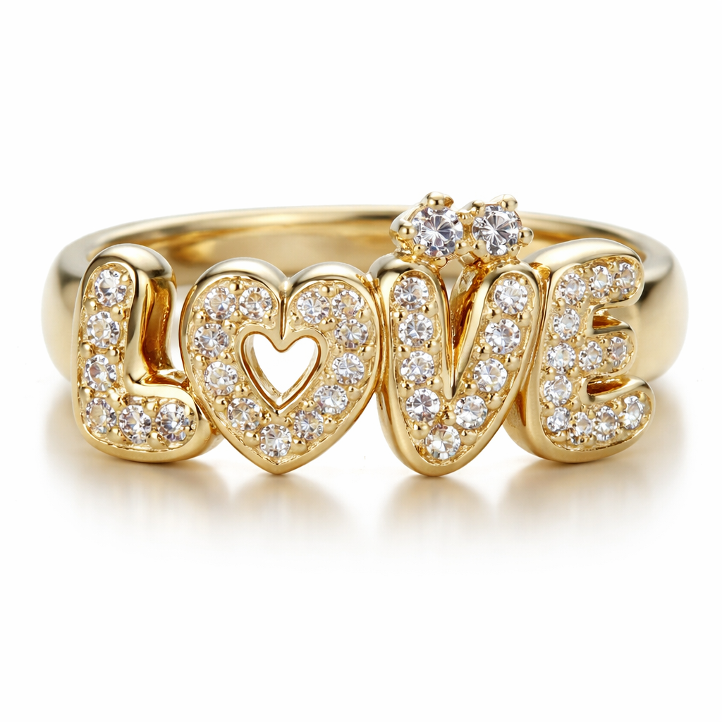 I would like the ring to have the word love in bubble letter format and 2 small diamonds on top