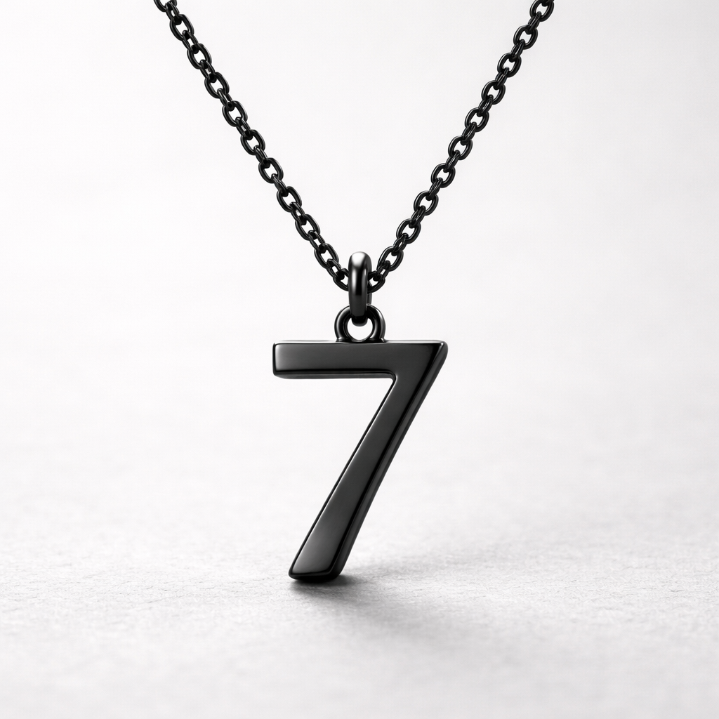 Modern jewelry: Modern black gold number necklace, minimalist design.