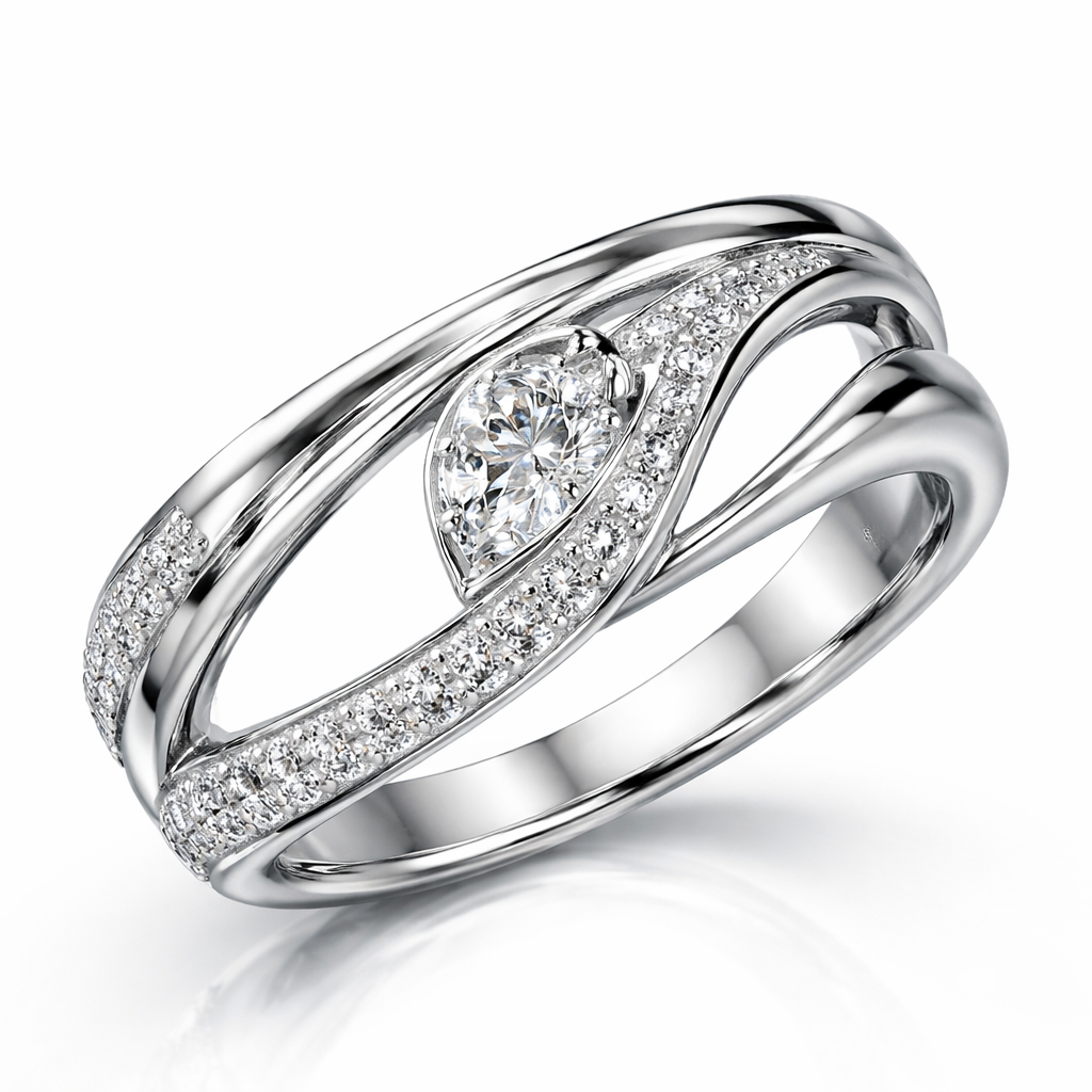 Set marquee diamonds in a curved wave ring design. The marquee diamonds should go from larger in the front of the ring t...