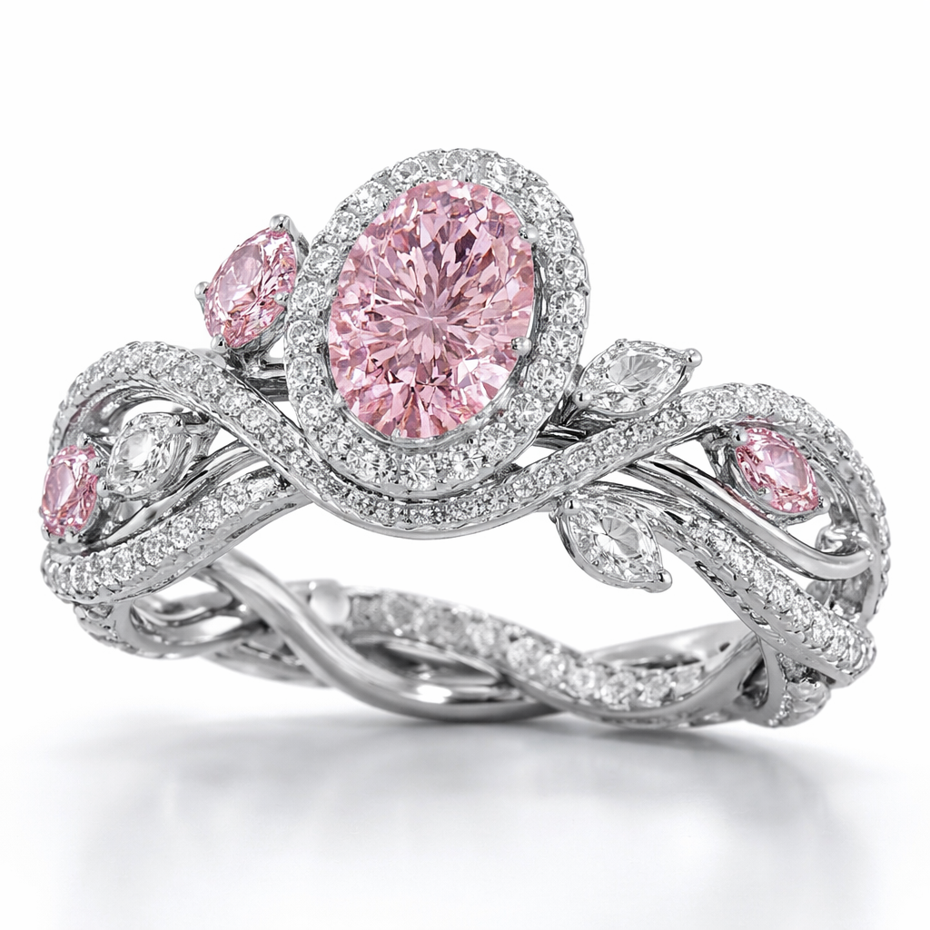 A Fancy Intense Pink and White Diamond Twisted Vine Ring, luxury style
