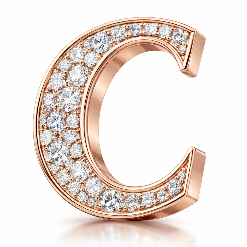 Letter c 3d rose gold with mosaic diamonds
