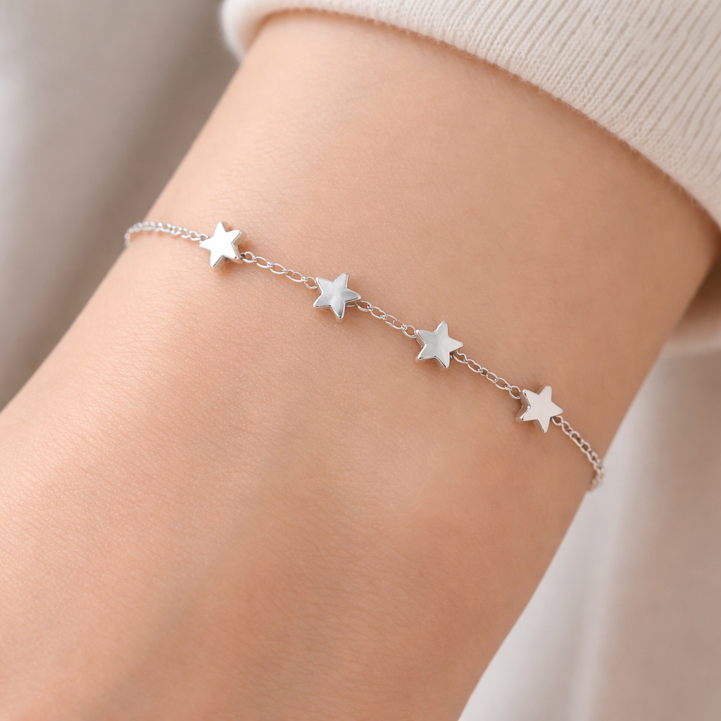 A minimalist women's bracelet made of silver suitable for daily wear. pulseira de estrelas