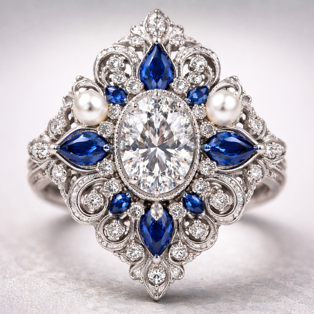 A beautiful ring with lots of elegant gems, victorian style