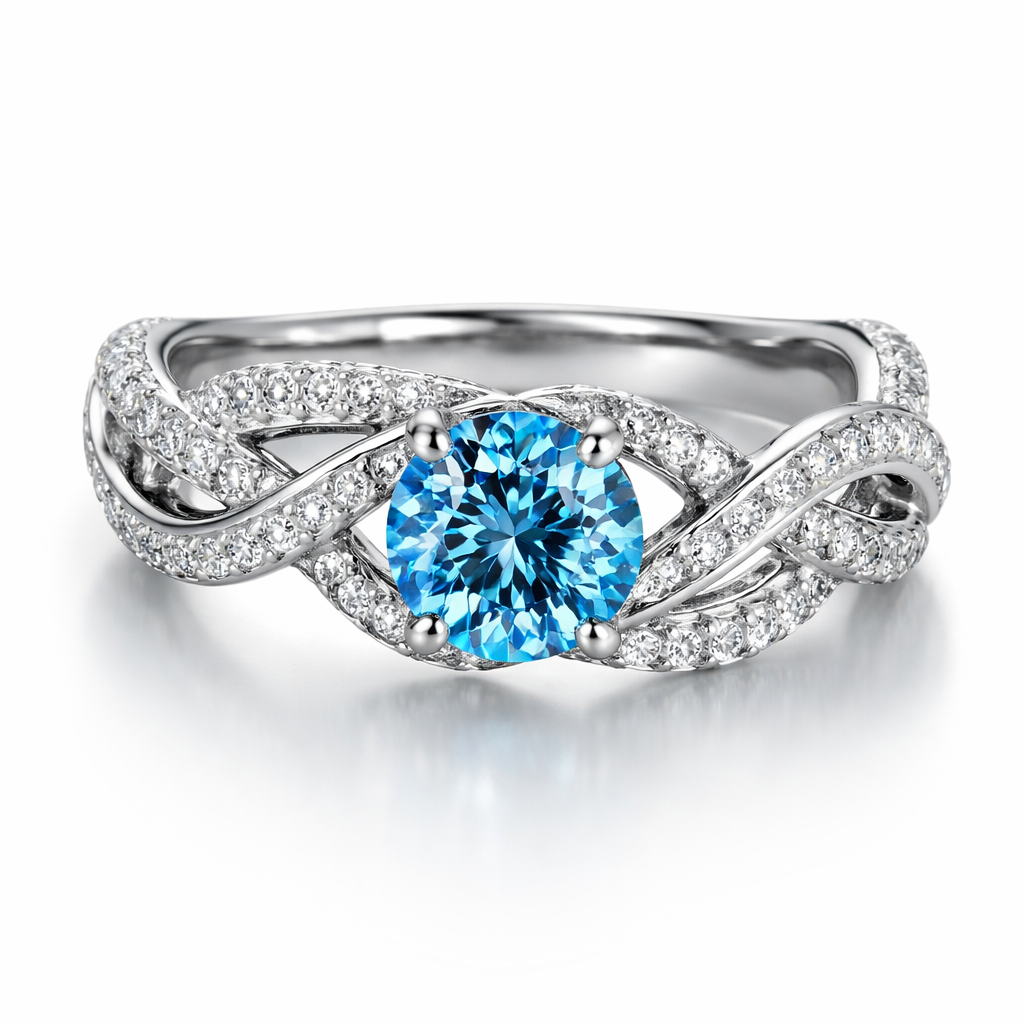Make a Fancy Intense Blue and White Diamond Twisted Vine Ring, modern style