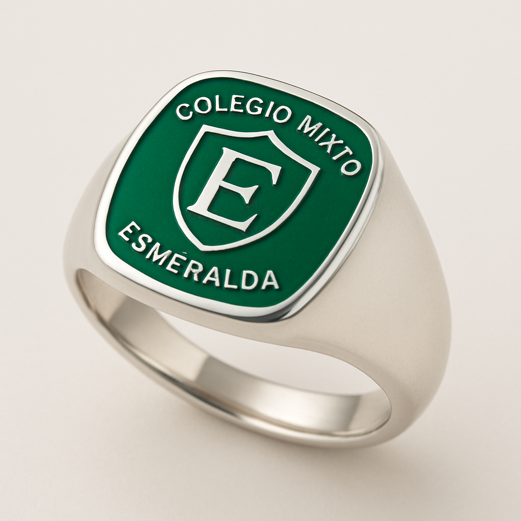 colegio mixto esmeralda, anillo de 6 grado con enamel de plata para mujer, signet style