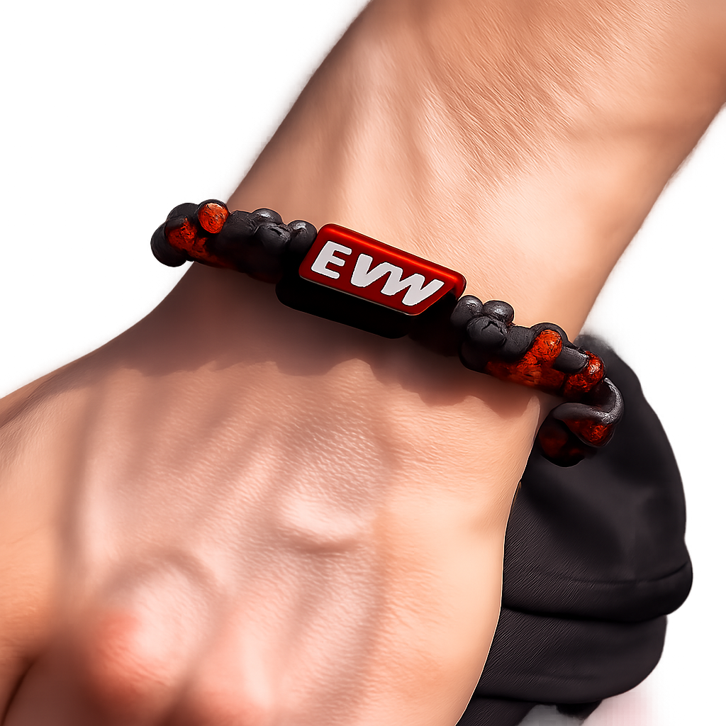 Tiktai gintaras , nenaudoti metalo ar odos apyranke vyrui sportininkui 20 metu, EVW logo, raudona juoda