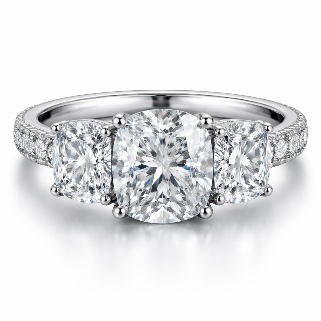 I want a stainless steel ring, a sapphire and diamonds on the side