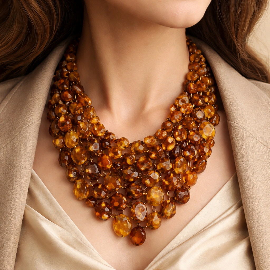 Only Ambers stones no steel necklace for women naturally colour for business women unique bucket form of amber stones , vintage style