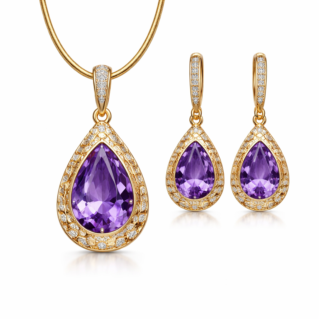 Very simple amethyst pendant and earrings for Brahmin with crocodile patterns with gemstones , modern style