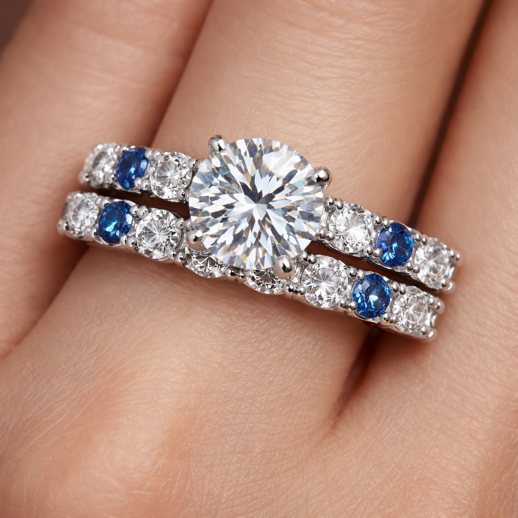 Need two diamond bands on either side of my engagement ring. Have 6 diamonds and 2 sapphire stones