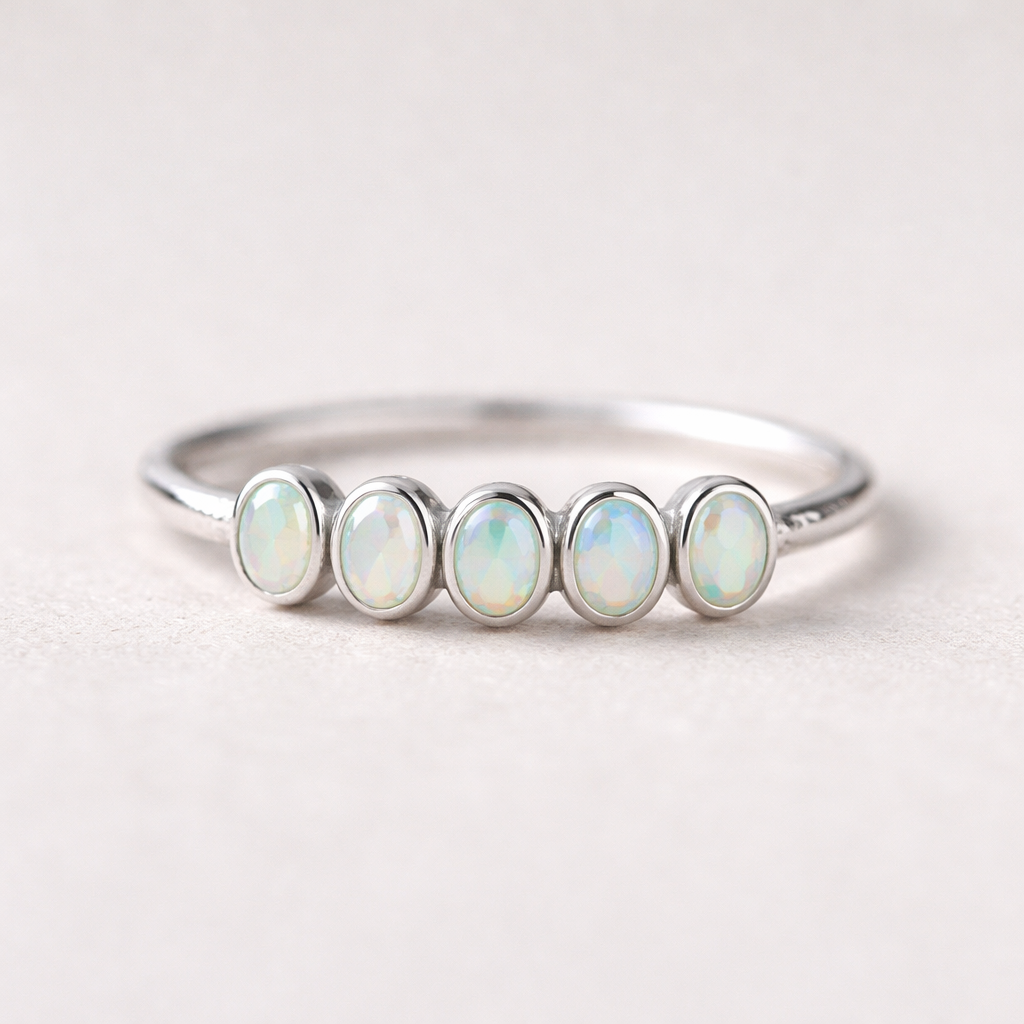 Diamond ring with a smooth heart-shaped stone. The ring is round and features small diamonds.