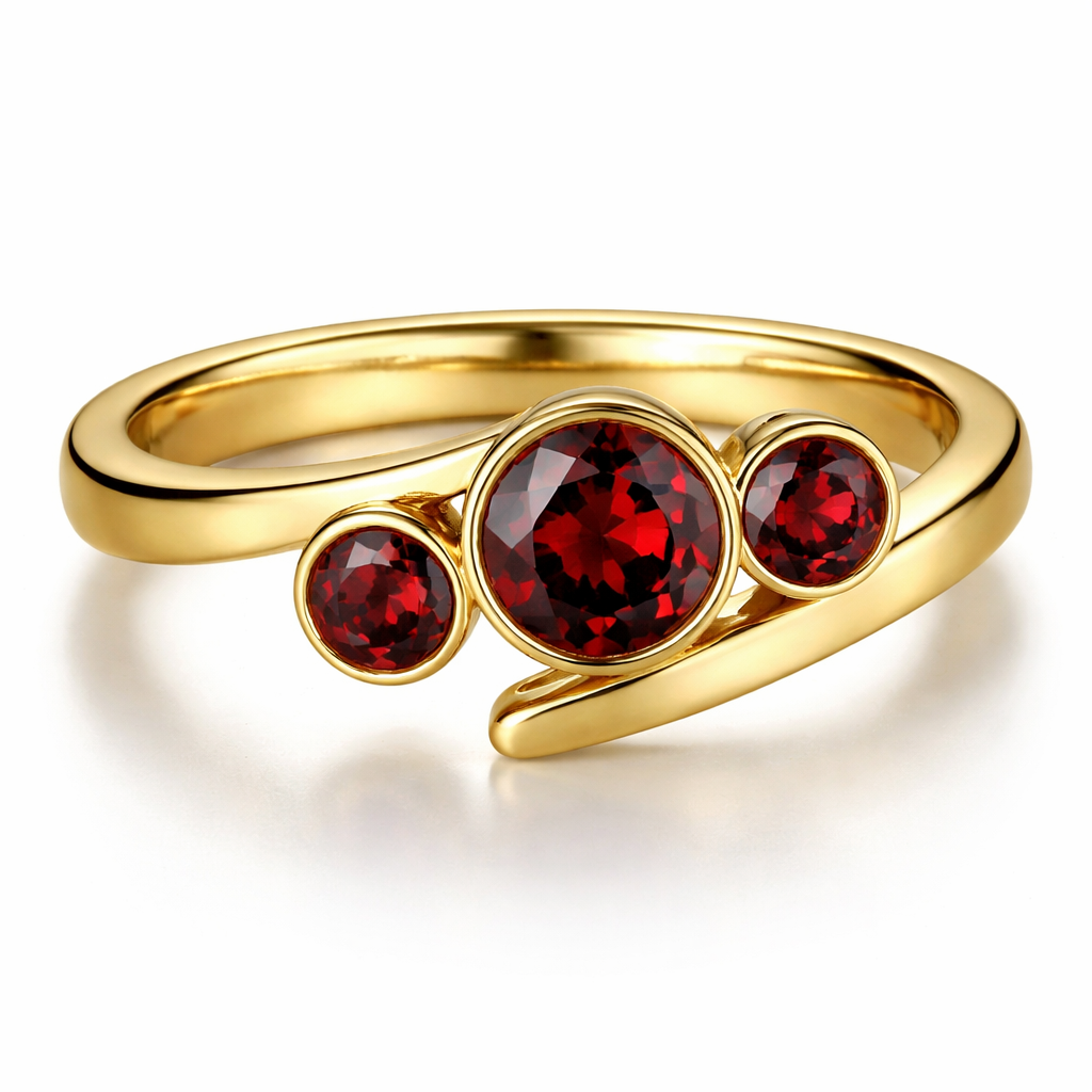 A modern women's ring made of gold with garnet stones suitable for daily wear, modern style