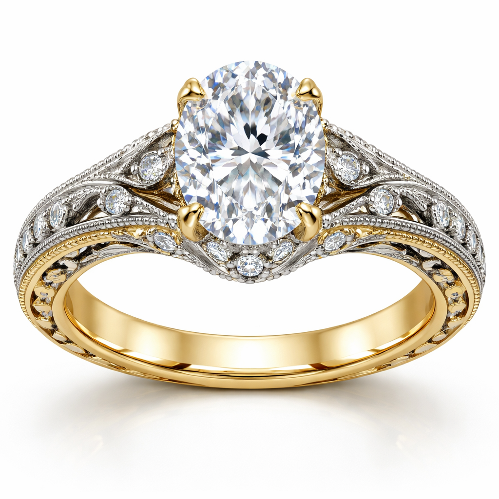3 carat oval shape diamond on gold vintage elegant, mixed_metal style