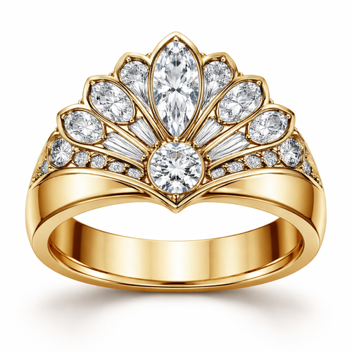 Create ring with .6 karat marquise centered, with .25 round stone directly under it with 6 more smaller marquise diamond...