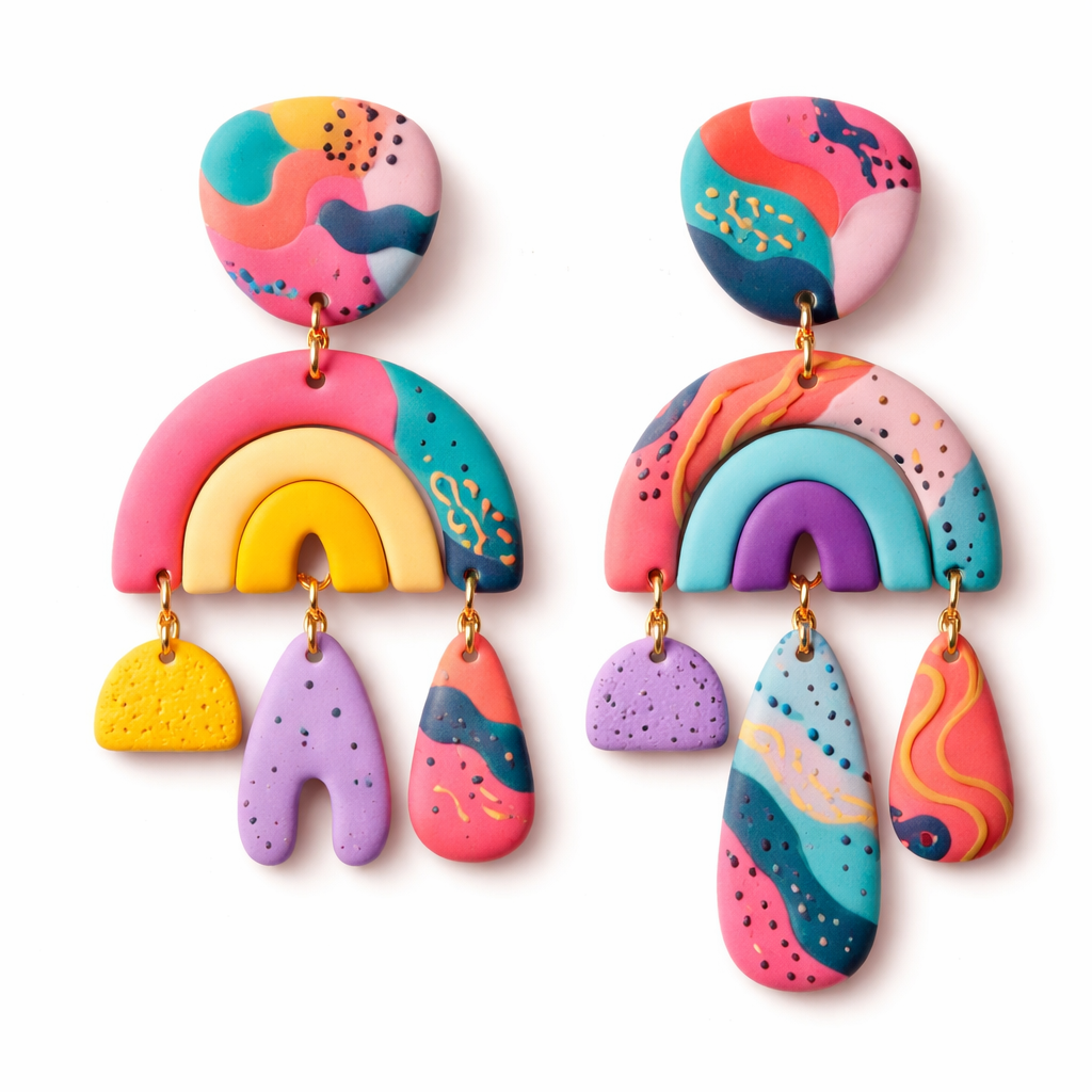Gold prong set Gemstone necklace. Gems are different sizes and the colors are light pink, hot pink, blue, light green, a...