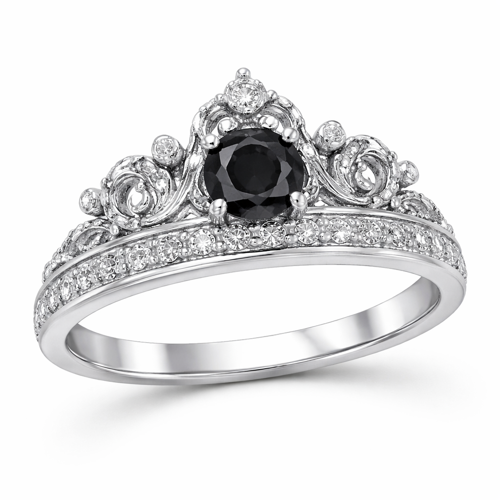 A classic women's ring made of silver with diamond stones suitable for daily wear. estilo coroa com pedra central preta, classic style