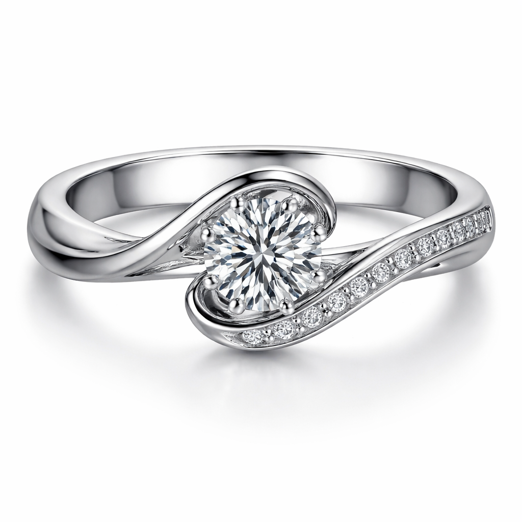 A women's ring made of white gold with diamond stones suitable for engagement. center stone oval 1.00, side stone from e...
