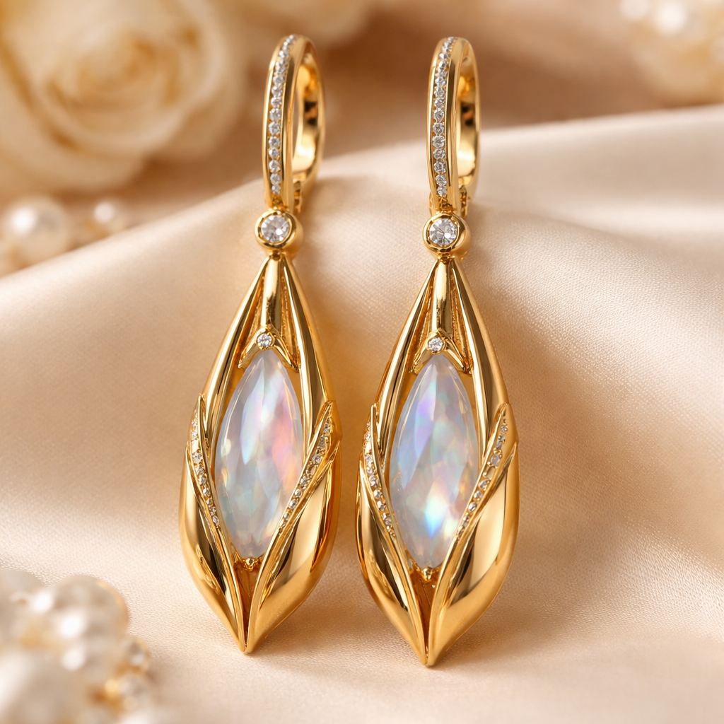 Hãy tạo một đôi hoa tai ngọc lục bảo dài hình giọt lệ kèm với đá cubic trắng trông sang trọng trẻ trung