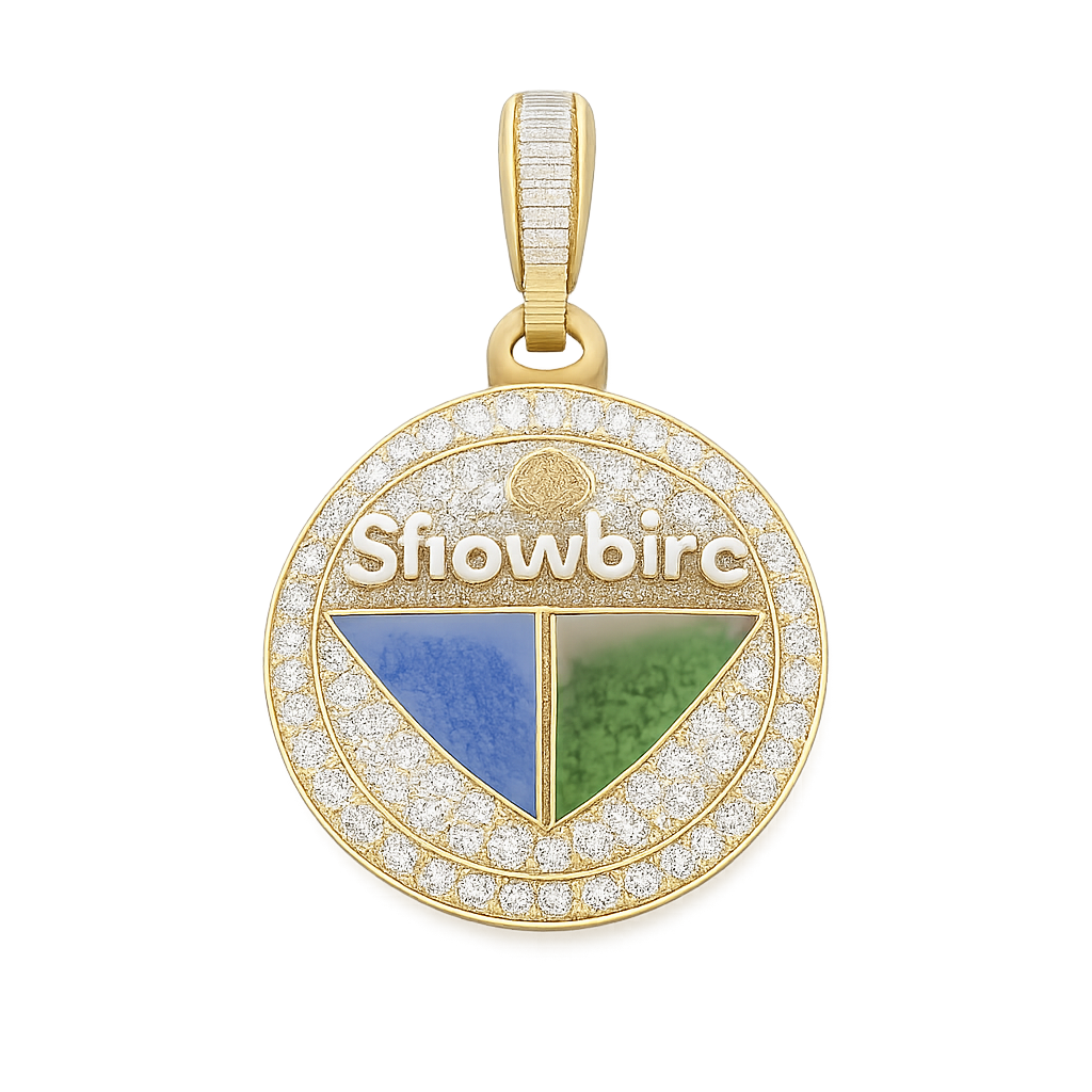 Make the snowbird ski resort logo in a 12 mm pendant in yellow gold set with pave diamonds