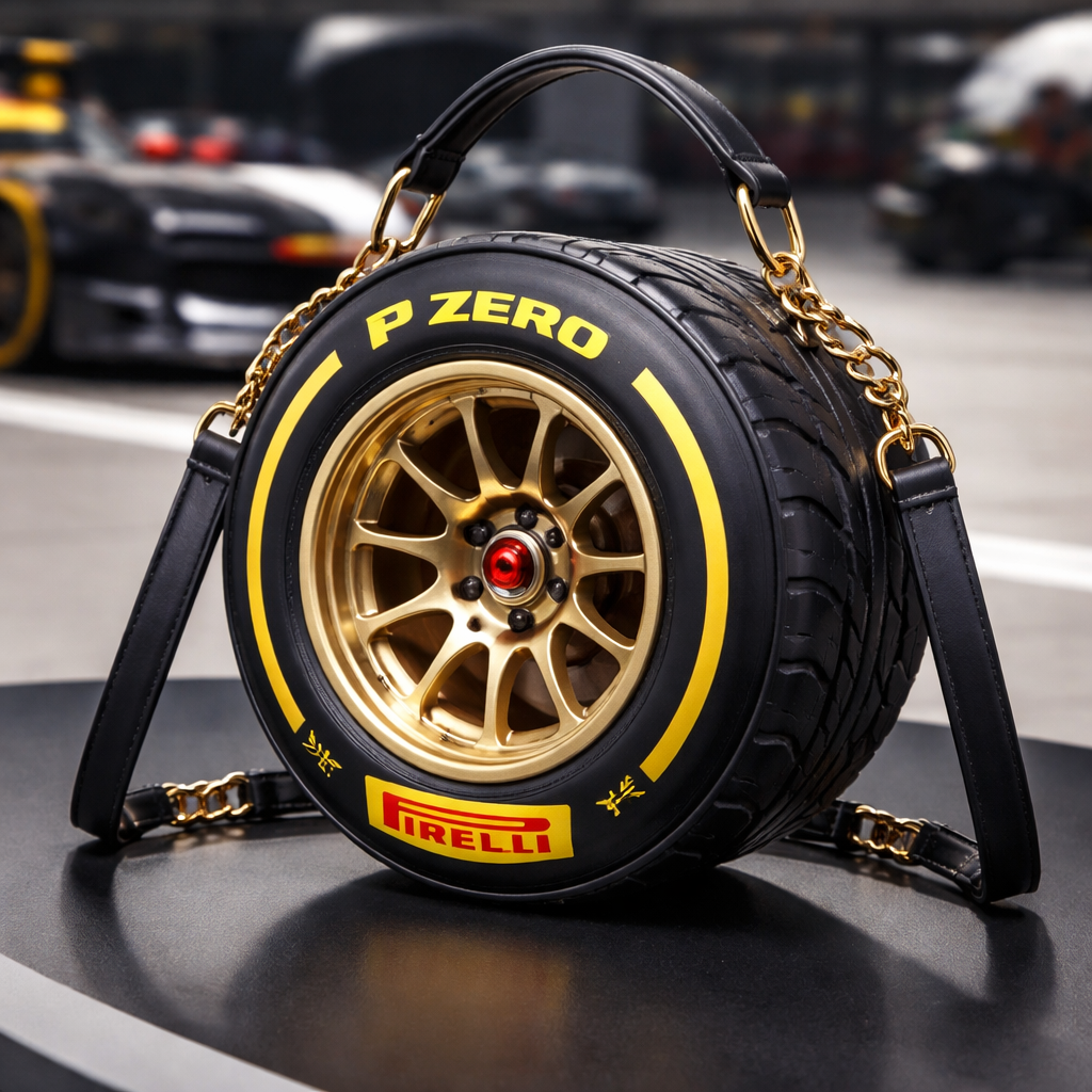 women bag related to f1 pirelli tyre with no jewellery , classic style