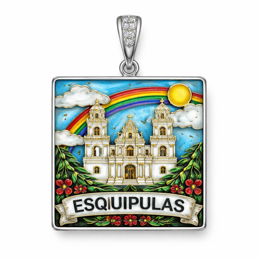 Templo de esquipulas pendiente cuadrada con enamel en. Silver 925