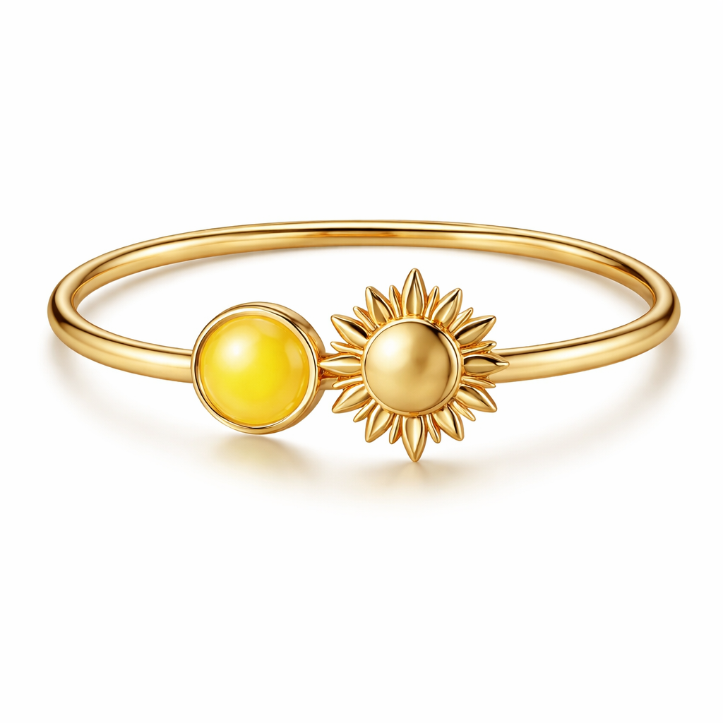 Creat a bangel bracelet what where there’s a yellow round shape stome and the other side a sun rays ( and they can be connected when we close them) (remove the diamond from the inside of the bracelet and make it pure gold
