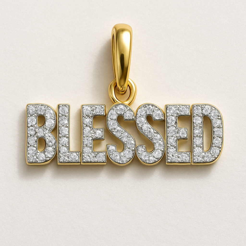 “Blessed ” diamond pave charm no coin just letters, mixed_metal style
