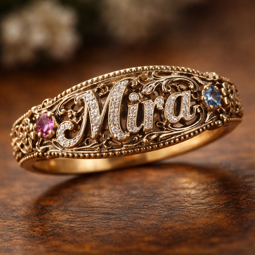 Create a luxury pinky finger ring design that appears to be four stacked rings but is actually one single connected ring...
