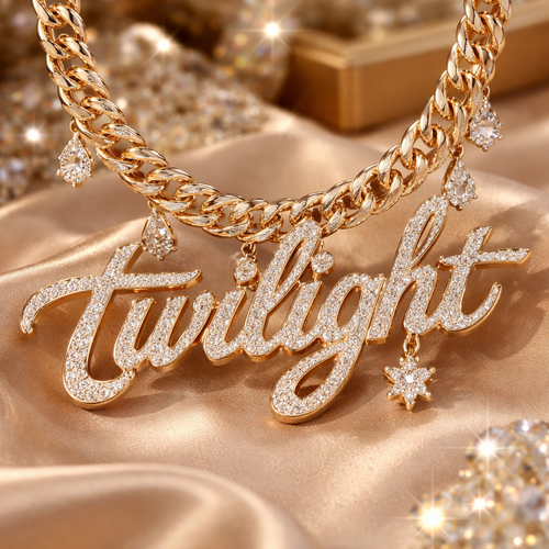 Make a necklace that says in gold diamand twilight and give it a my jelwery vibe
