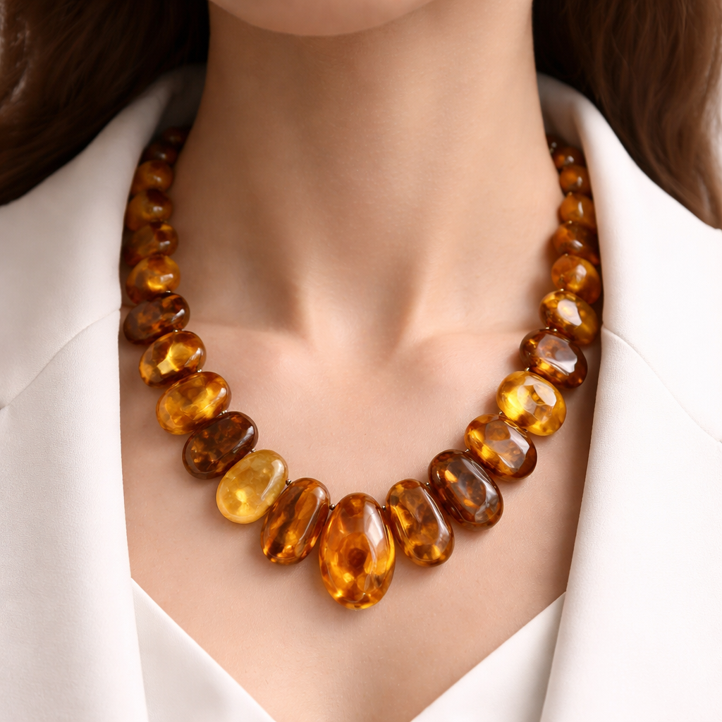 Only Ambers stones no steel necklace for women naturally amber colour for business women unique form of amber stones , minimalist style