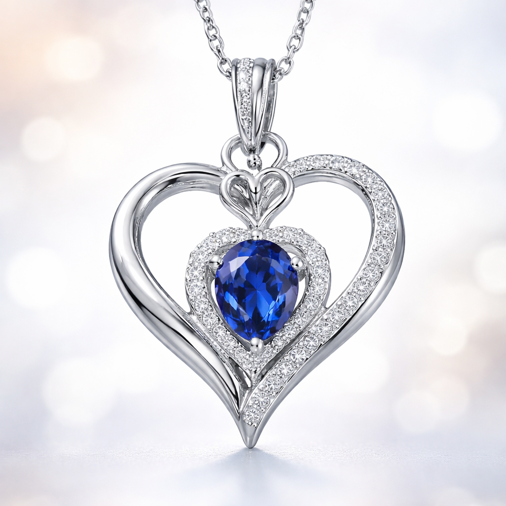 A romantic women's pendant made of silver with diamond and sapphire stones suitable for daily wear, romantic style